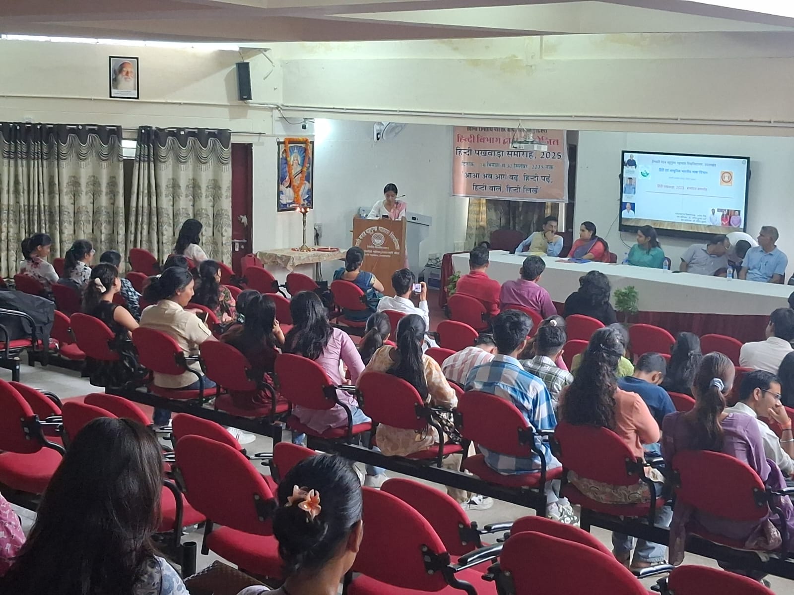 सह-संयोजक डॉ. अमित कुमार शर्मा ने हिंदी पखवाड़ा के अंतर्गत आयोजित विभिन्न प्रतियोगिताओं और गतिविधियों की विस्तृत जानकारी दी। उन्होंने बताया कि आने वाले वर्षों में छात्रों की अधिक भागीदारी सुनिश्चित करने हेतु और भी नवाचार कार्यक्रमों की योजना बनाई जाएगी।