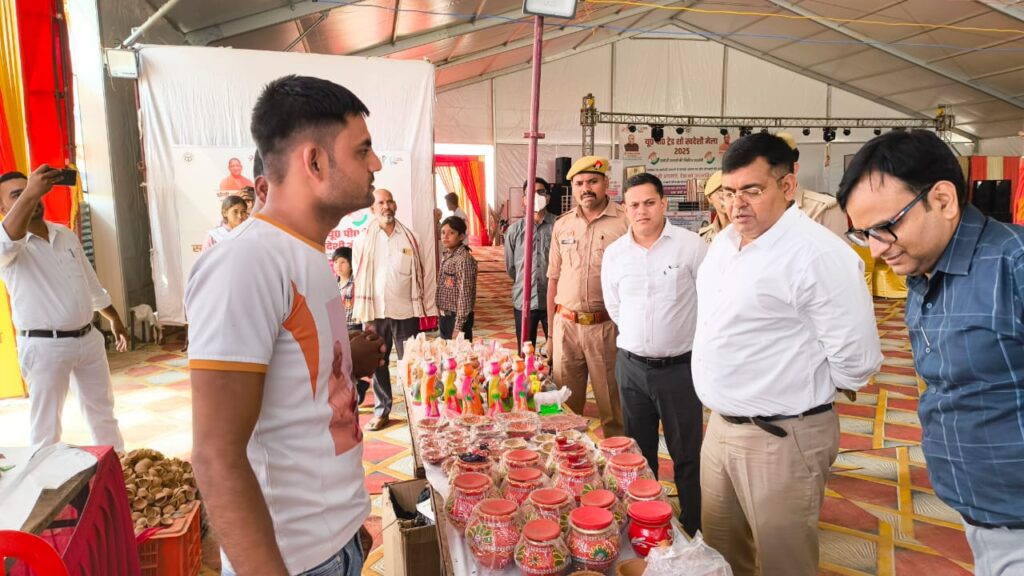 नुमाइश मैदान में चल रहे यूपी ट्रेड शो स्वदेशी मेला में सोमवार को जिलाधिकारी संजीव रंजन के आगमन से माहौल खास बन गया। उन्होंने मेले का निरीक्षण करते हुए विभिन्न स्टालों पर प्रदर्शित स्वदेशी उत्पादों की जानकारी ली और उद्यमियों तथा स्वयं सहायता समूह की महिलाओं से आत्मीय बातचीत की।