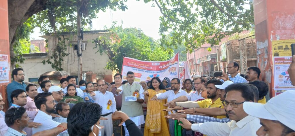 अलीगढ़, 05 अक्टूबर 2025 : संचारी रोग नियंत्रण अभियान के अंतर्गत जिले में रविवार को एक भव्य जागरूकता रैली का आयोजन किया गया। रैली का शुभारंभ महापौर श्री प्रशांत सिंघल ने फीता काटकर एवं हरी झंडी दिखाकर किया। उन्होंने नागरिकों से अपील की कि वे अपने आसपास स्वच्छता बनाए रखें और संचारी रोगों की रोकथाम में प्रशासन का सहयोग करें। इस अवसर पर उपस्थित अधिकारियों एवं कर्मचारियों को स्वच्छता की शपथ भी दिलाई गई।