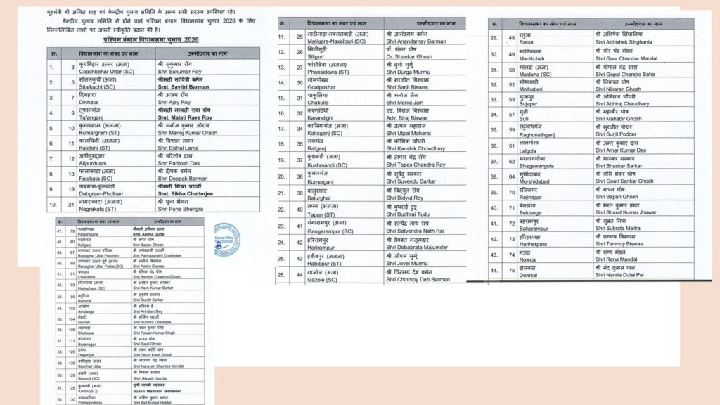 जारी सूची के अनुसार हंसन विधानसभा सीट से निखिल बनर्जी को उम्मीदवार बनाया गया है। वहीं कूचबिहार उत्तर सीट से सुकुमार रॉय को पार्टी ने टिकट दिया है। इसके अलावा दिनहाटा विधानसभा क्षेत्र से अजय रॉय को भाजपा ने अपना प्रत्याशी घोषित किया है। इन नामों की घोषणा के बाद संबंधित क्षेत्रों में कार्यकर्ताओं और समर्थकों के बीच उत्साह का माहौल देखा जा रहा है।