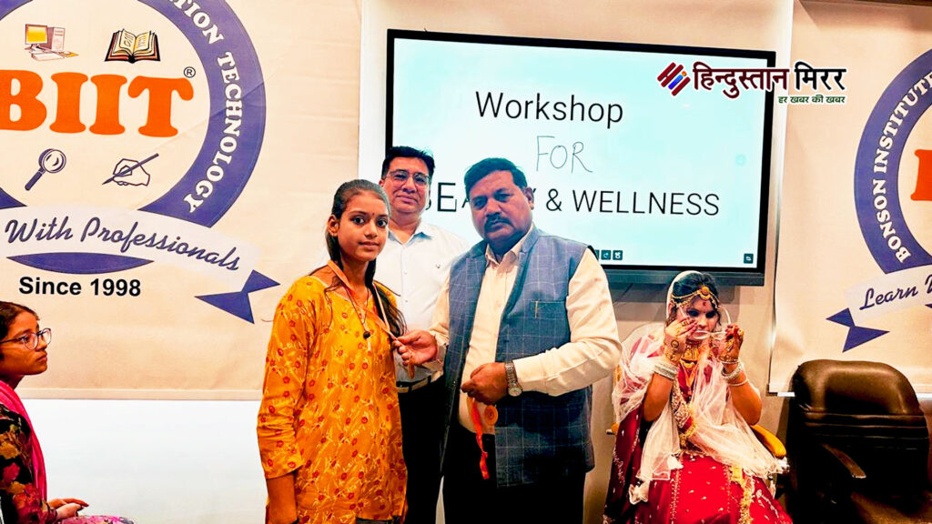 अलीगढ़: बिट ग्रुप ऑफ एजुकेशन, खिरनी गेट स्थित संस्थान के सभागार में शनिवार को ब्यूटी वैलनेस वर्कशॉप का आयोजन हुआ। इस कार्यक्रम में छात्राओं ने मेकअप, स्किन केयर, हेयर स्टाइलिंग और नेल आर्ट जैसे विभिन्न ब्यूटी सेक्टरों में अपने कौशल और रचनात्मकता का शानदार प्रदर्शन किया।