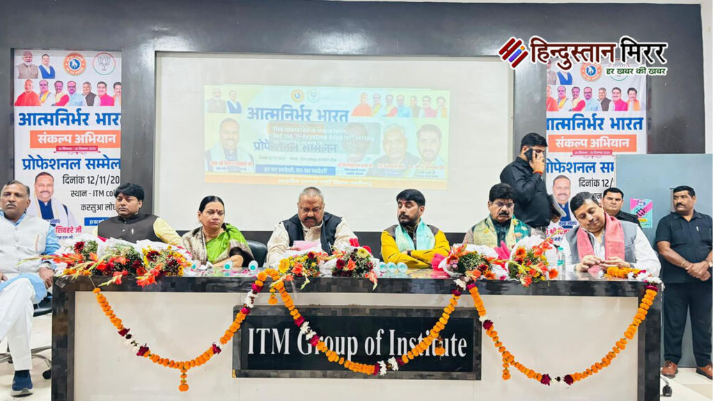 अलीगढ़। आत्मनिर्भर भारत संकल्प अभियान के तहत आज आईटीएम कॉलेज, अलीगढ़ में भव्य “प्रोफेशनल सम्मेलन” का आयोजन किया गया। यह सम्मेलन प्रधानमंत्री श्री नरेंद्र मोदी जी के आत्मनिर्भर भारत के विज़न को जन-जन तक पहुंचाने की दिशा में एक सार्थक प्रयास रहा। कार्यक्रम में मुख्य अतिथि के रूप में भाजपा के प्रदेश मंत्री श्री विजय शिवहरे ने उपस्थित होकर प्रेरक संबोधन दिया।