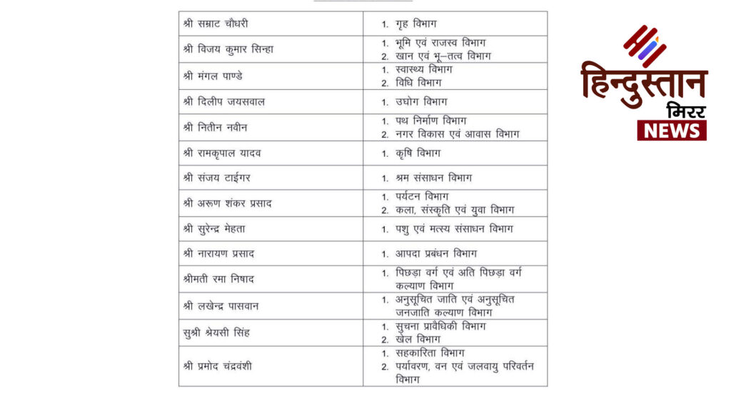 बिहार में नई एनडीए सरकार के गठन के बाद विभागों का बंटवारा सामने आ गया है और इस बार कई अहम बदलाव देखने को मिले हैं। मुख्यमंत्री नीतीश कुमार ने 10वीं बार मुख्यमंत्री पद की शपथ लेने के बाद शुक्रवार को मंत्रालयों का आवंटन किया। सबसे बड़ी और ऐतिहासिक बात यह रही कि 20 साल में पहली बार नीतीश कुमार ने राज्य का सबसे महत्वपूर्ण गृह विभाग अपने पास नहीं रखा है। यह विभाग अब बीजेपी कोटे से आने वाले डिप्टी सीएम सम्राट चौधरी को सौंपा गया है।