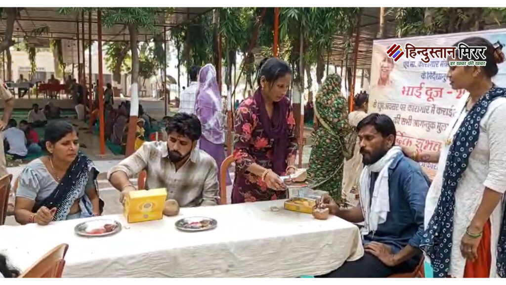 अलीगढ़। जिला कारागार में भाई दूज का पर्व भावनाओं से भरा माहौल लेकर आया। जेल परिसर में बहनों ने अपने भाइयों के माथे पर तिलक लगाकर, आरती उतारकर और मिष्ठान खिलाकर प्रेम का प्रतीक यह त्योहार मनाया। इस दौरान कई बहनों की आंखें आंसुओं से भर आईं और वे अपने भाइयों को देखकर भावुक होकर रो पड़ीं।